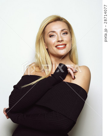 Beautiful blonde girl in a black dress. A variety