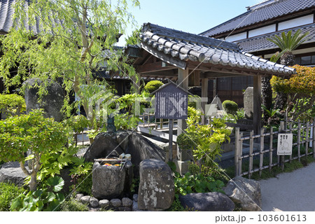 柳井地名の発祥地「湘江庵」の柳と井戸(山口県柳井市)