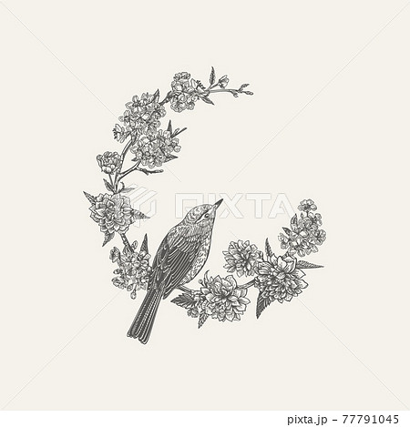 Twig with flowers and bird.