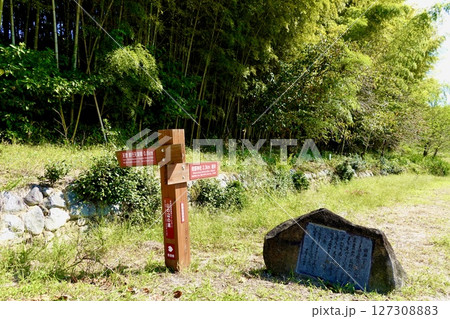 山の辺の道(やまのべのみち) 景行天皇陵への分岐を示す道しるべが立つ風景 奈良県桜井市