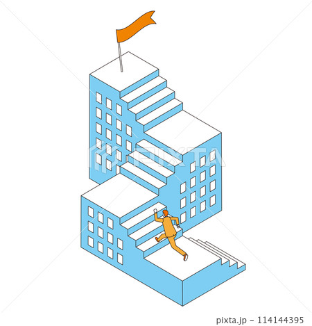 Businessman run upstairs reaching business goal
