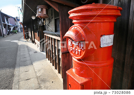 古いポストのある風景 湯浅町の古い町並み 和歌山県