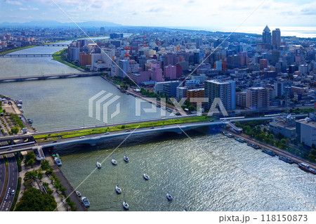 メディアシップ展望台より信濃川上流方面の街並みを望む