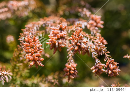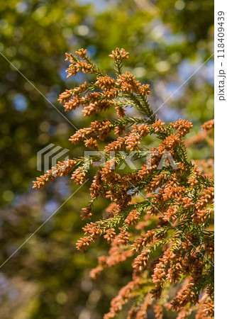 飛散直前の杉花粉・杉の雄花【花粉症イメージ素材】