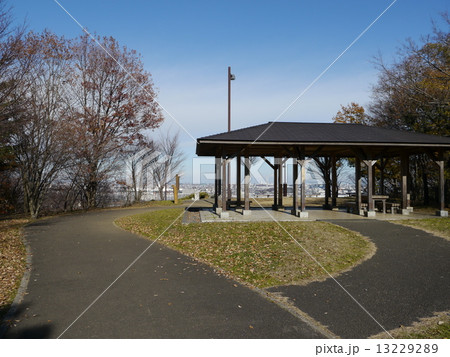 秋の東京都多摩市 桜ヶ丘公園のゆうひの丘の東屋