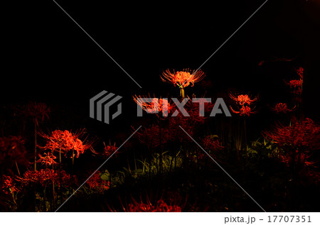 夜の闇に咲き誇るヒガンバナ・彼岸花