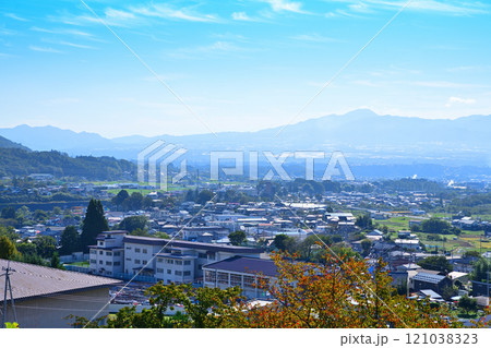 奥利根ゆけむり街道からの眺め 街並み風景と赤城山 みなかみ町