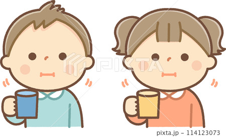 口をゆすぐ男の子と女の子