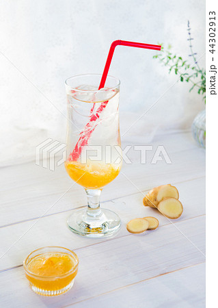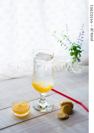 グラス レモンスカッシュ ジンジャエール 飲み物 イラスト リアル