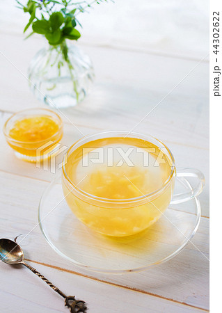 フレッシュなレモンティー 柚子茶 果物 レモネード ホットドリンク 紅茶 水彩風 背景白