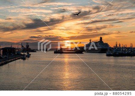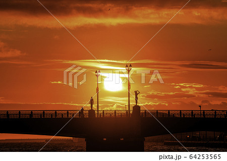 幣舞橋 釧路川に沈む夕日と夕焼け