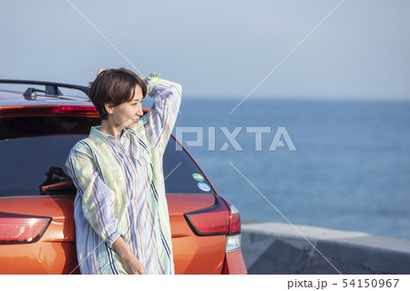 女性 海 車 リラックス