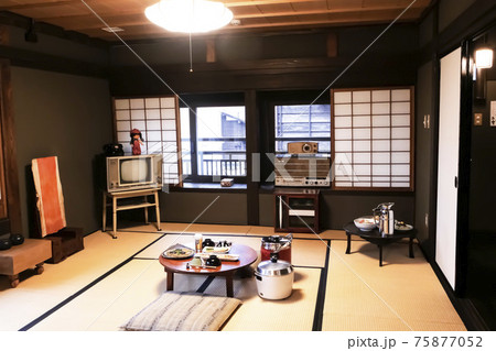 風景、時代、写真 昭和の町家の食卓 昭和の記録 懐かしい昭和の食卓 丸いちゃぶ台を囲む昭和の食卓