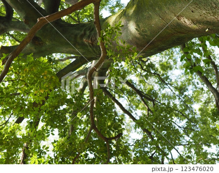 木にとまる鳥 木の幹から語りかけるもの 緑の爽やかさを感じる。 そして、歴史。