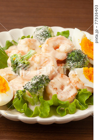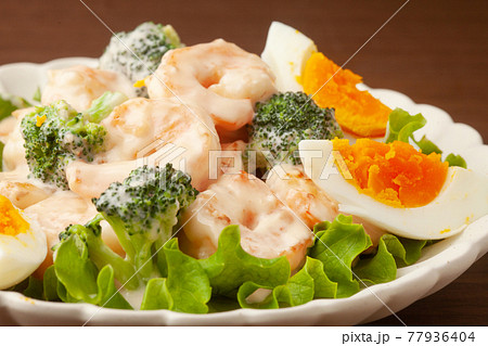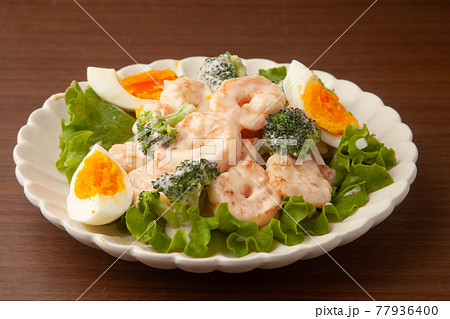 エビとブロッコリーのサラダ 小皿 玉子
