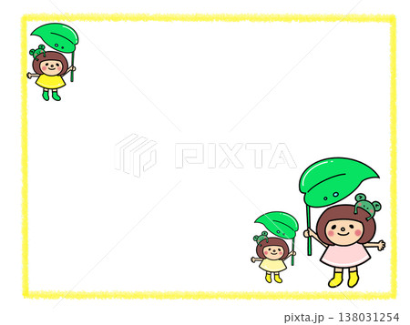 カエルと葉っぱの傘と長靴でおしゃれするカワイイおかっぱボブヘアの女子