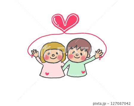 赤い糸で結ばれた仲良し男の子と女の子のカップル