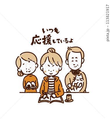 勉強する女の子と応援する親のイラスト