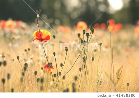 Poppy in the field at sunset