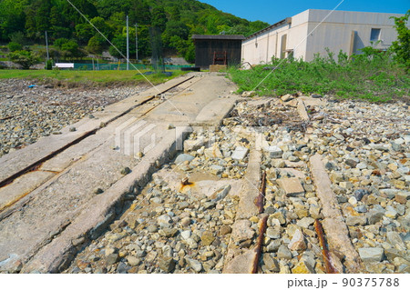 国立療養所長島愛生園の海岸 船引き揚げレール跡 岡山県瀬戸内市邑久町