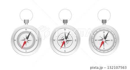 Compasses showing navigation direction and guidance on white background