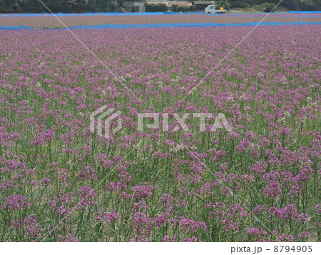畑の一面に咲くラッキョウの花 鳥取県 鳥取砂丘