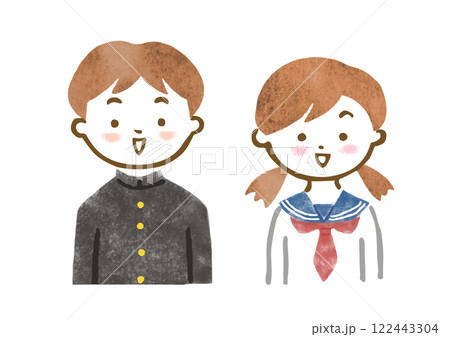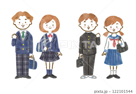 制服(学ラン、セーラー服)を着た学生男女のイラスト