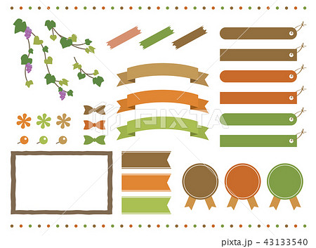 クラシックなリボンのあしらいとフレームのベクターイラストセット クリスマスカラー / アイコン、