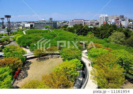 白山公園の空中庭園から見る新潟市民芸術文化会館