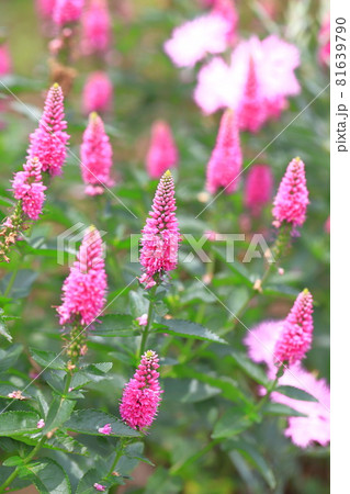 ピンクと紫色のベロニカ(ルリトラノオ)の花