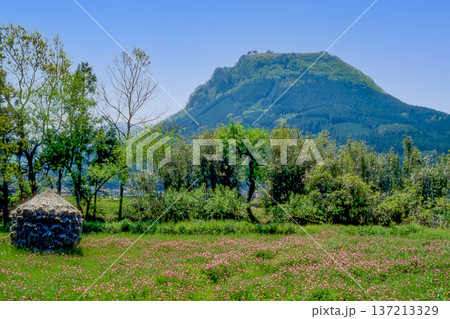 田園の風景:レンゲソウの花:大阪府枚方市穂谷