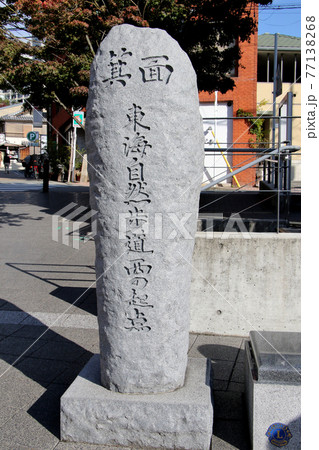 阪急箕面駅前にある箕面 東海自然歩道西の起点 の石碑 アップ