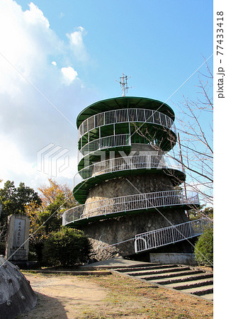 大阪府池田市の日の丸展望台 手前にはすべり台 縦位置