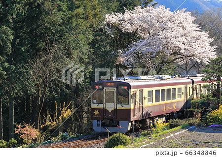 わたらせ渓谷鐵道「桜満開の風景と列車」