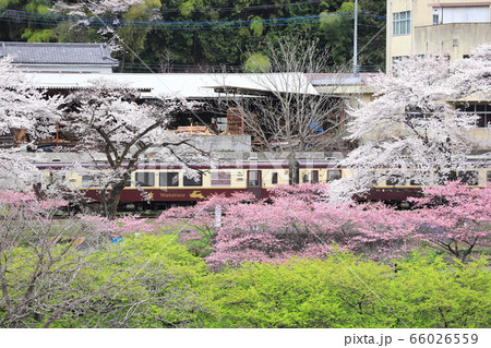 わたらせ渓谷鐵道「ピンク色の桜の花々に包まれた列車」