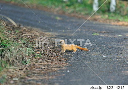 道路を横断するチョウセンイタチ(鹿児島県・出水市)
