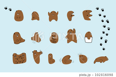 いろいろな形のくま 表情 ポーズ さし絵 イラスト セット
