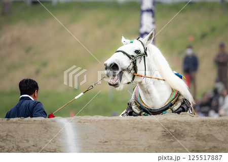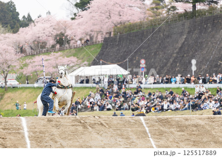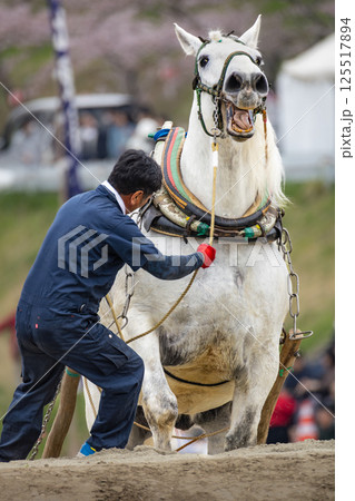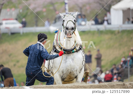 東北輓馬競技大会 障害に挑む輓馬と扶助