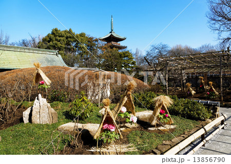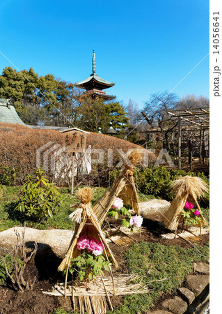 冬ぼたん 上野東照宮ぼたん苑 五重塔