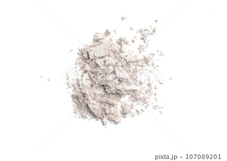 Mineral makeup powder twist seal sifter isolated on white background. Many beige foundation powder. Skin tone face cosmetic product sample