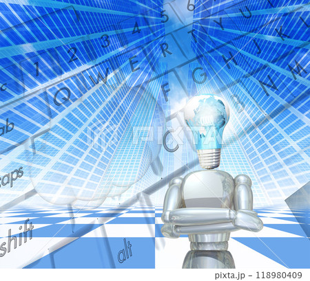 新しいアイデアが生まれるイメージイラスト、AIと人間、ベクター