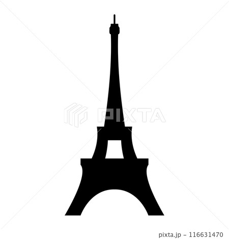 Eiffel tower in Paris, famous tourist sight, symbol and attraction in France, Europe, vector, illustration in black and white color, isolated on white background