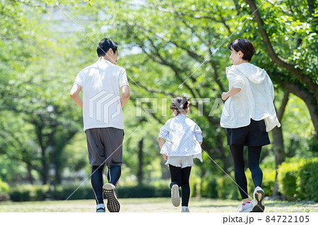 ジョギングをする若い家族の後ろ姿