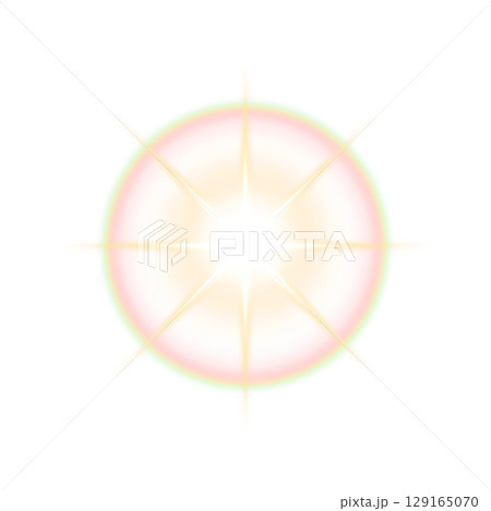 透明背景の虹色の輝きを持つ八方向太陽フレア