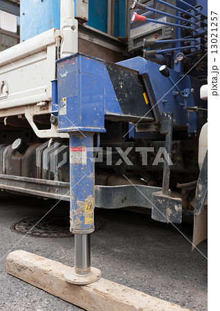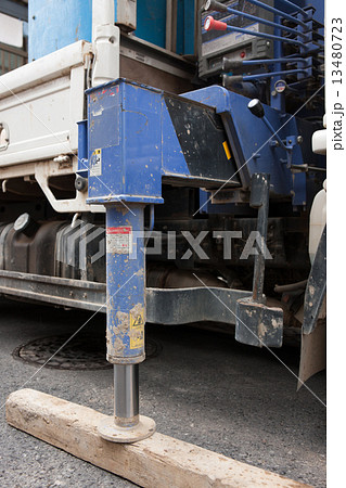 路面にアウトリガーを張ったクレーン車 a-4 クールカラー