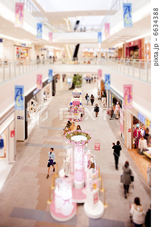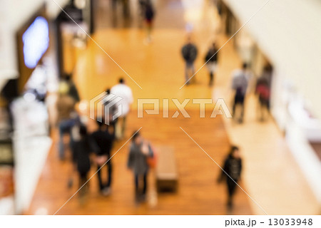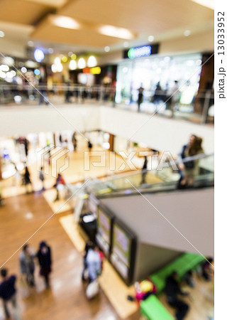 ショッピングモール 多くの買物客で混雑するイメージ スローシャッター