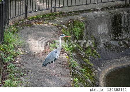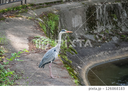 琵琶湖疏水 諸羽トンネル出口付近にたたずむアオサギ 京都市
