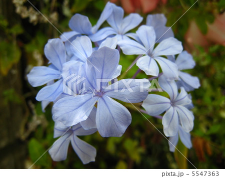薄日を浴びたルリマツリ(ペイルブルーのプルンバゴの花)