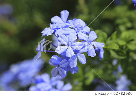 日ざしを浴びたルリマツリ(水色のプルンバゴの花)