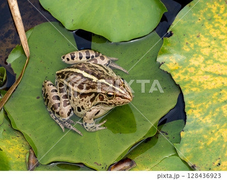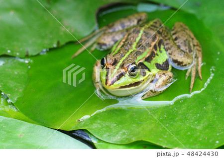 睡蓮の葉の上にいるトノサマガエル
